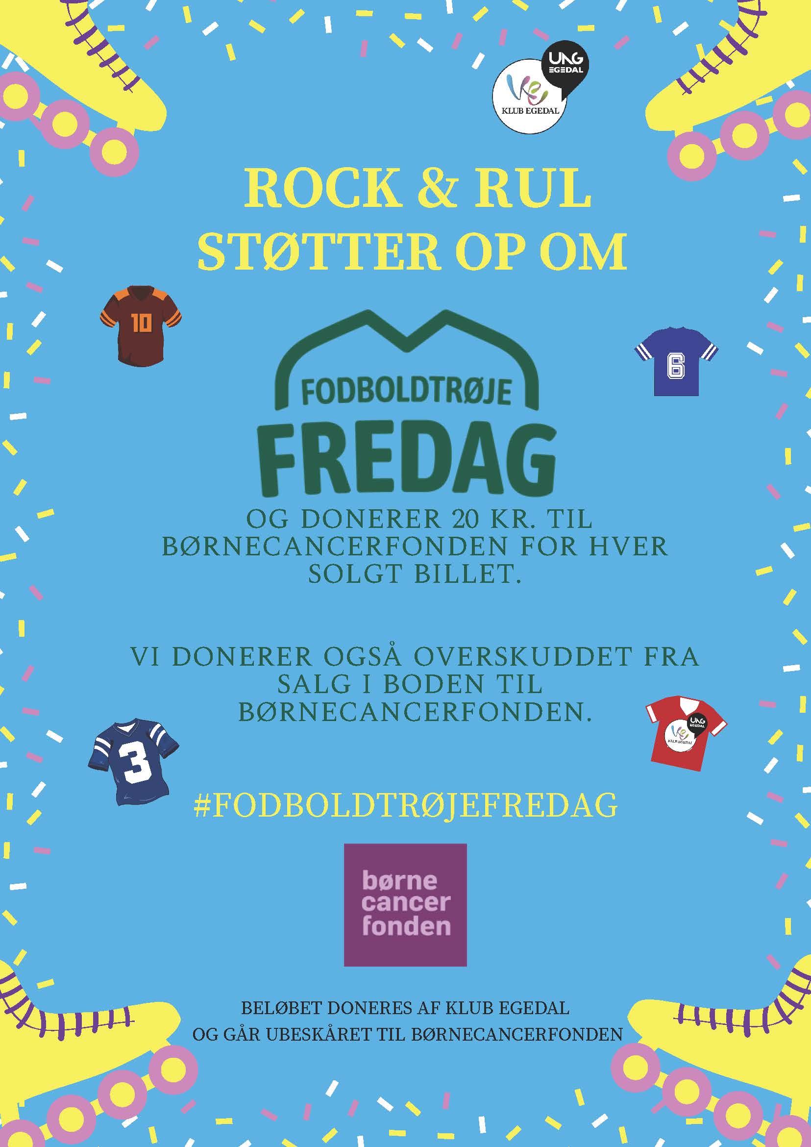 Klub Egedal støtter op omkring fodboldtrøjefredag og donere 20 kr. for hvert solgt billet til Børnecancerfonden sammen med overskuddet fra boden.